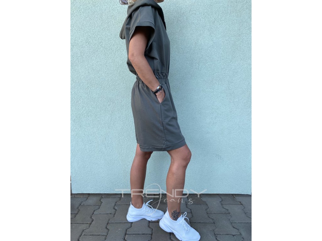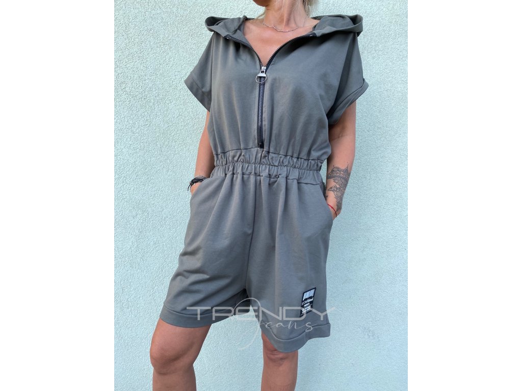 Jednoduchý a stylový kousek, který dokonale padne. Pokud miluješ raději pohodlí, tak je tenhle overal právě pro tebe. Jedná se o teplákový materiál a krátký střih. Má zapínání na zip do půl pasu, v pase je také na gumu . Overal má kapuci i kapsy.